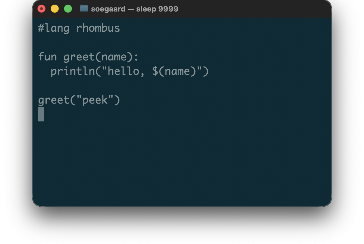 Programming languages: Shell, C, C++, Objective-C, Go, Haskell, Java, Pascal, Python, Racket, Rhombus, Rust, and Swift